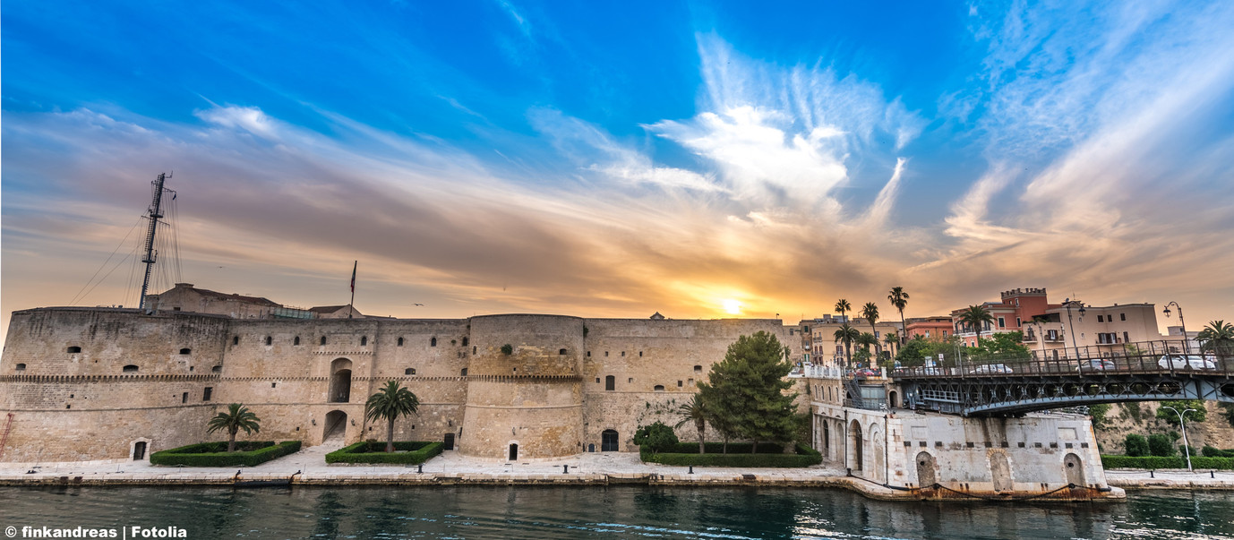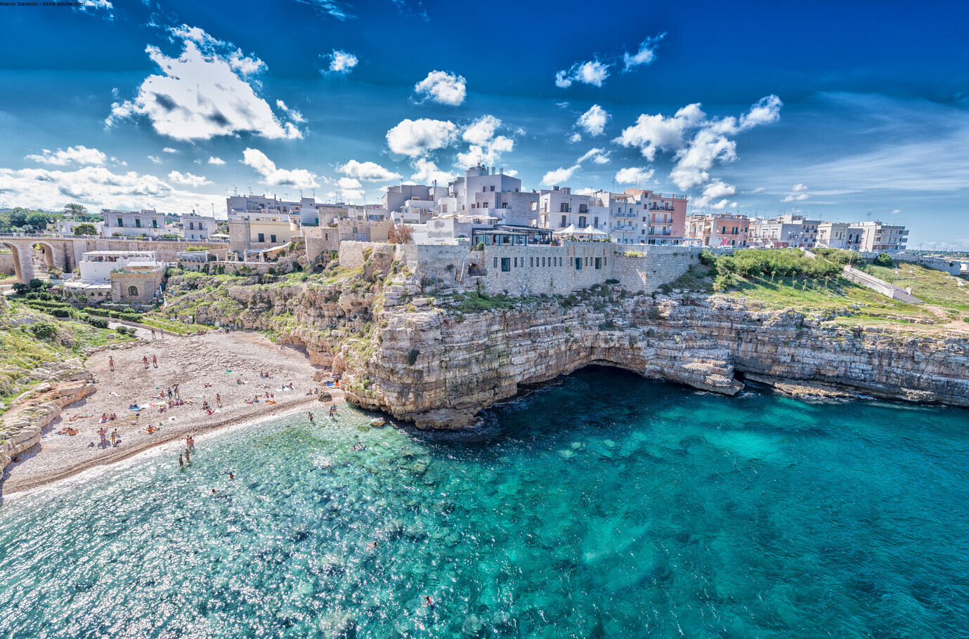 4e jour ; Marché de Monopoli — Polignano a Mare : Petit déjeuner à votre hôtel. Départ avec votre guide pour MONOPOLI, visite libre de son célèbre marché. Continuation pour POLIGNANO A MAR, repas de midi et temps libres dans cette charmante ville en bord de mer. Retour à votre hôtel, repas du soir et nuitée.